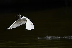Snowy Egret Cruising Past a Gator